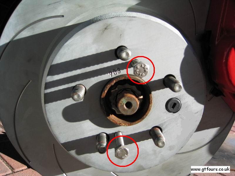 off M8 x 1.25 bolts which screw into the face of the disk. Doing these bolts up evenly will help to lever the disk off the hub (as shown). You may also need a little help from a rubber mallet to tease the disk off the hub once you have released it using the bolts as described above