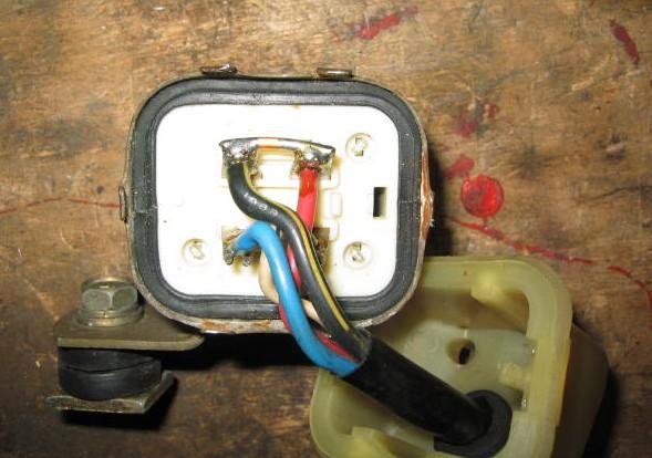 Undo the relay mounting bolt and remove the relay from the wiring loom. Turn the relay upside down and prise the metal clasps away from the side of the relay. Pull off the plastic cover, this seems like it won't budge, but that's only because it is stuck to the rubber gasket - give it a firm tug! Now you can see the wires coming from the bottom of the relay. Connect the two wires together - black/yellow to the red wire.