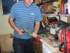 Put the shaft in a vice and tap the bearing off the end of the shaft. It will be very tight. |