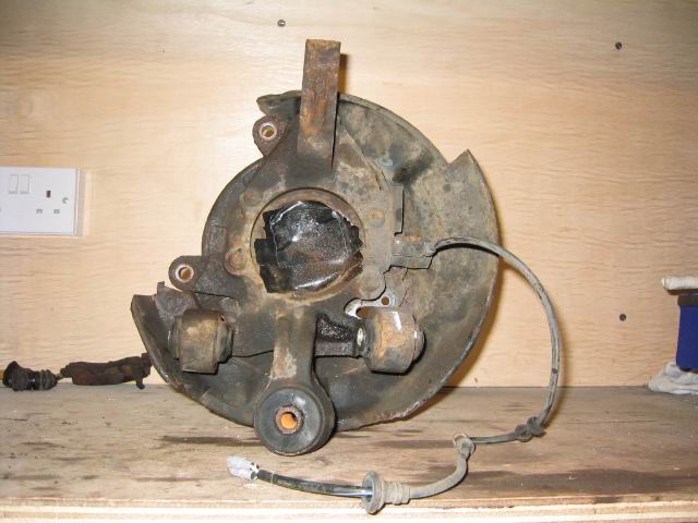 | To remove the hub it is best to disconnect the ABS sensor from within the car, rather than try to remove it from the hub. Trust me I've removed them! Remove the rear seat by releasing the two catches on the front edge of the seat. Under the rear seat there is a small white plastic connector...undo it | |