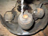 | View looking at back of hub. Notice there are 3 bushes to be replaced. It is a good idea to spray the nuts with penetrating oil and leave to soak | |