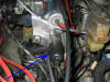 | The pump requires a fair amount of power. In order to control this power a relay needs to be installed. I fitted mine where the fuel pump resistor used to be. If you've relocated your battery then this is a brilliant place - out of the way, secure and close to a point where you can easily tap into the battery. The wiring loom for the WI isn't particularly long and this point is excellent to provide power to the pump and enough reach to the pressure switch. Relay indicated | |