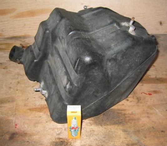 | Next up is the water reservoir. I got a windscreen wiper bottle from another 165. Cut a hole through the inner wing and fed up the bottle. The advantage of this is a large water reservoir - 5litres - ish, out of the way, in a cold place, and very close to the pump. The pump should be as close as possible to the reservoir as it isn't made to "suck" water, it's made to push! I applied some Araldite and stuff so that 1 of the holes was blocked and the other could seal the pipe for the water feed to the pump. In order to mount the reservoir here you will need to remove all the crap in the inner wing i.e. the resonator - picture. Also to mount this here you will need to relocate the battery to the boot. You can use the existing windscreen wiper reservoir but I am not a fan of this method... | |