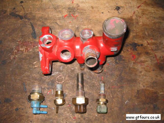| End view | ATS racing/GM knock sensor. Apparently this is a replacement for the stock knock sensor... | ATS racing/GM knock sensor. I wouldn't fit one of these to my car since KS are "tuned" to a specific engine | Sensors within the water elbow |
