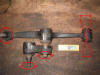 One end of the arm attaches to the front sub frame. This joint is similar in nature to the rear spherical hub joints |