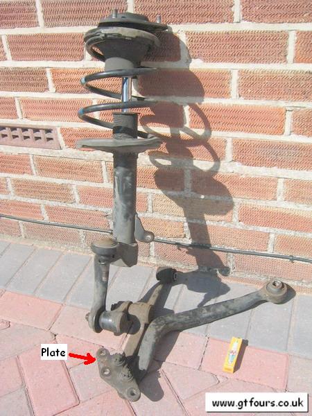The lower arms both attach to the plate via a ball joint |