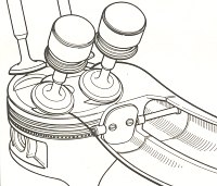 The fuel injectors "aim" a jet of fuel at each valve. The 2 outlets can clearly be seen from the injector picture below. Therefore, below 4300 rpm when the "flap" is shut the spray from the injector is not being carried as efficiently as possible into the cylinder.